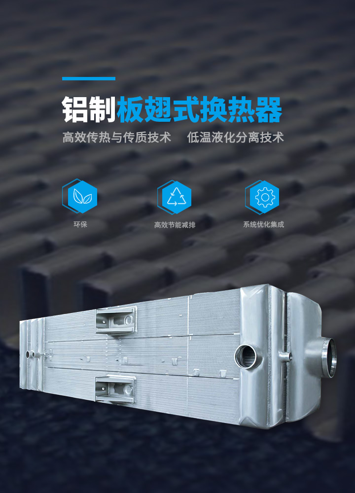 公司主營大型鋁制板翅式換熱器的開發(fā)、設計、制造和技術服務,公司核心產品為鋁制板翅式換熱器。